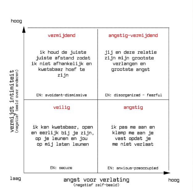 Onveilige hechting is een disfunctioneel relatiepatroon dat we herhalen als volwassenen. Deze patronen zijn het resultaat van onvoorspelbaarheid of onbetrouwbaarheid van onze ouders of verzorgers tijdens onze kindertijd. Daarbij kun je uit een stabiel gezin komen, positief terugkijken op je jeugd, maar toch in een bepaalde mate onveilig gehecht zijn. Ouders nemen hun eigen gehechtheidspatronen onbewust mee in de opvoeding van hun eigen kinderen. Je kunt meer aan de vermijdende of aan de angstige kant van onveilige gehechtheid zitten.